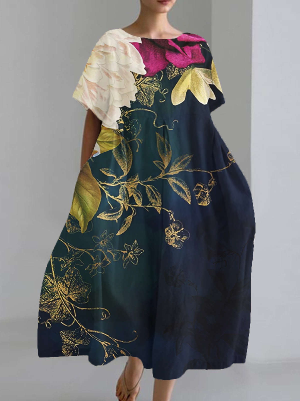 Damen-Kurzarm kleider mit Blumen druck locker lässig
