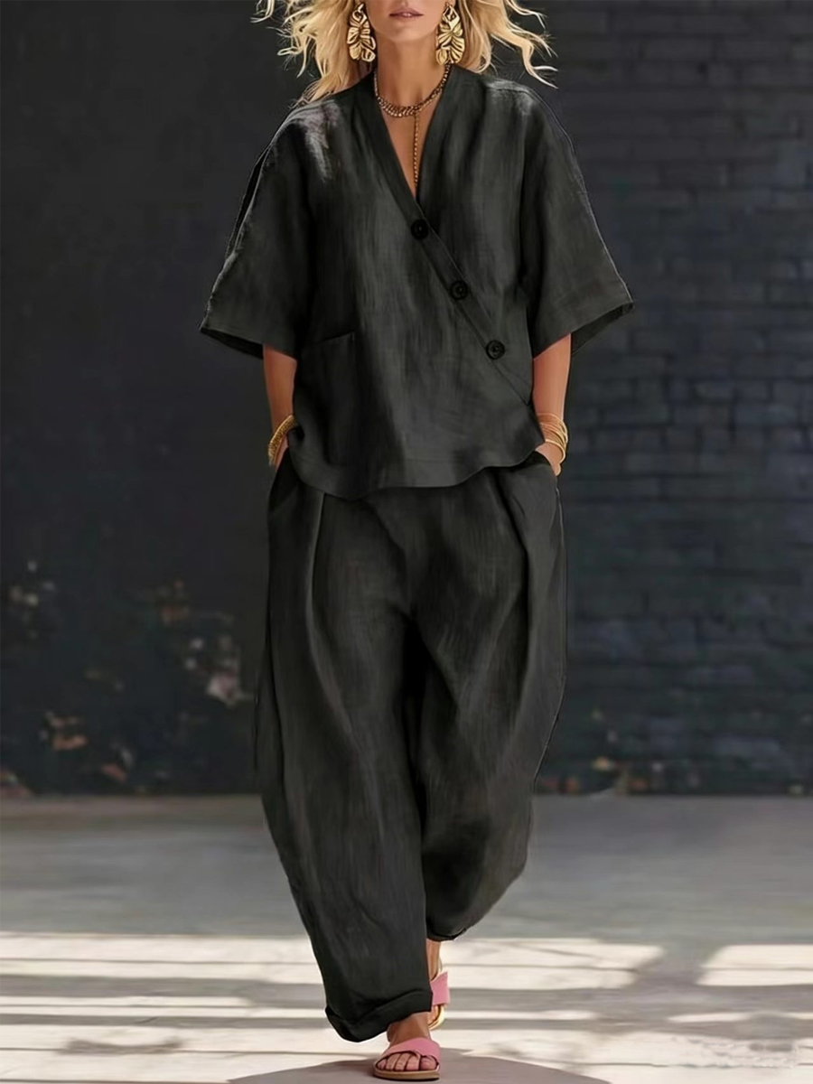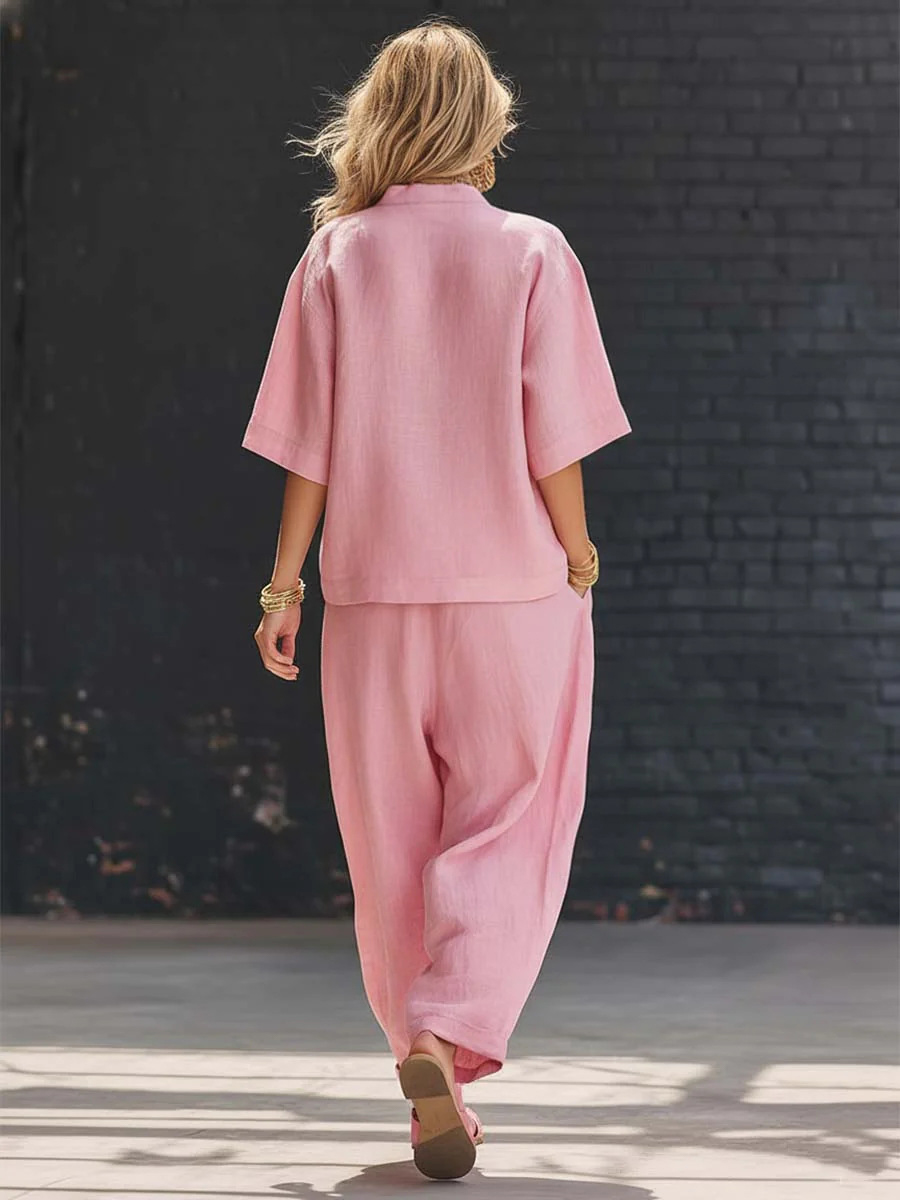 Damen-Lässiges, einfarbiges, stilvolles Zweiteiler-Set