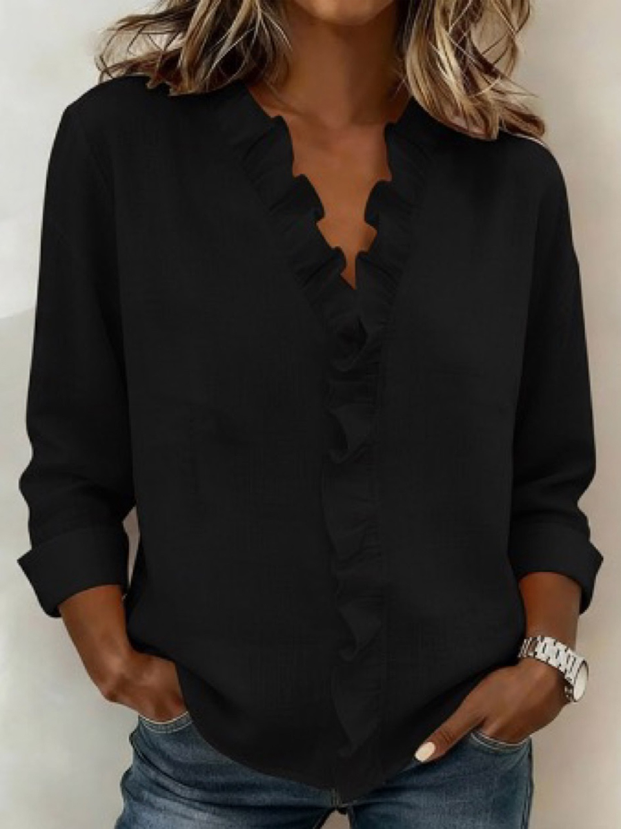 Damen lässiges elegantes Rüschen-Longsleeve-Shirt