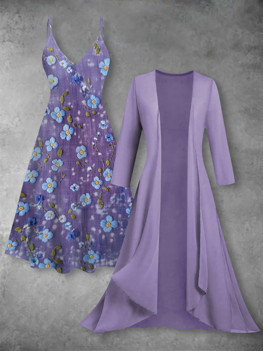 Damen lila Forget-Me-Not-Blumen druck Alzheimer-Awareness-Unterstützung Kleid Strickjacke zweiteiliges Set