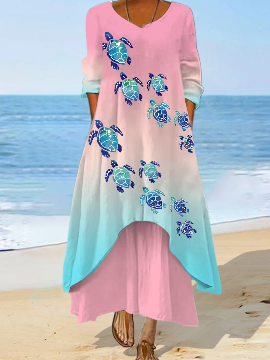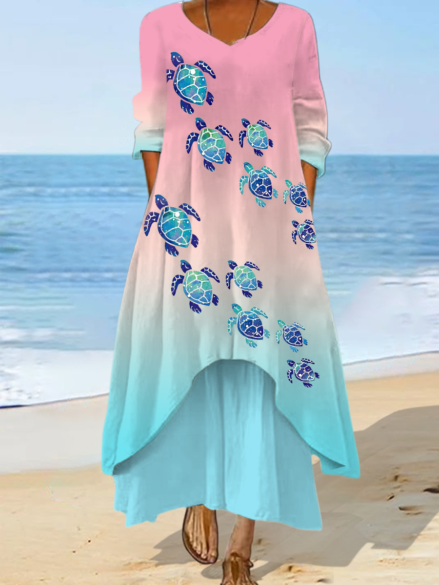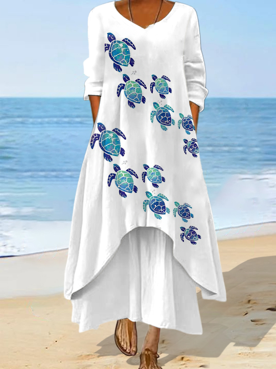 Damen Meeres schildkröten druck Sommer Strand Ozean Urlaub Freizeit kleid