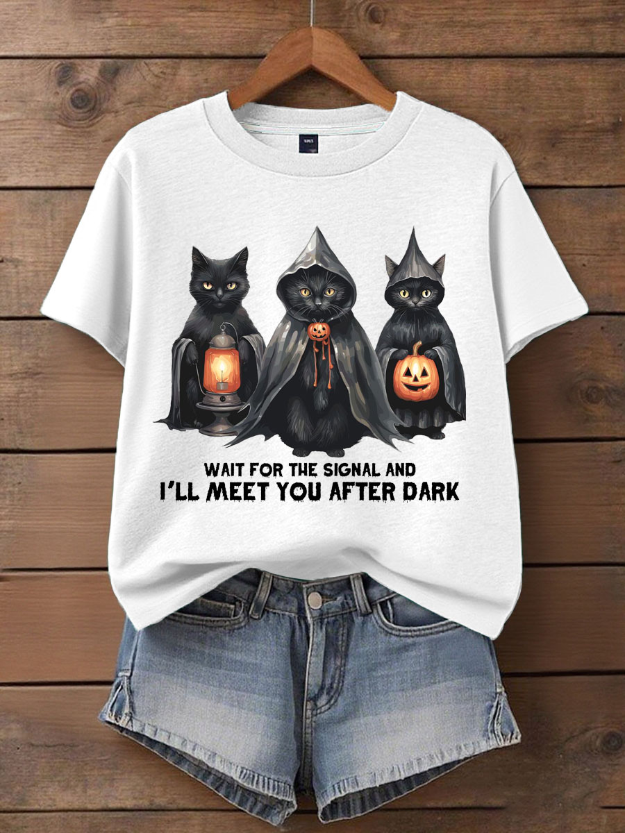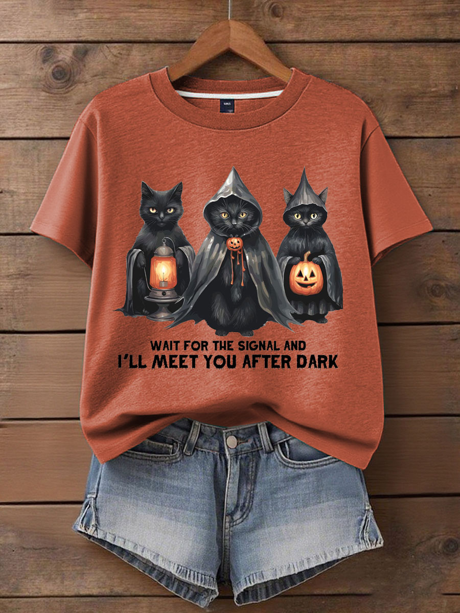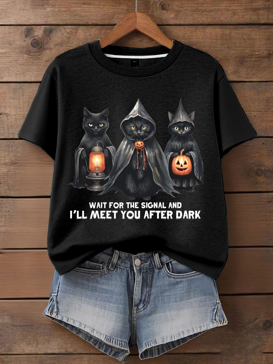 Damen Musik Liebhaber Halloween treffen Sie nach dunkel bedrucktem T-Shirt