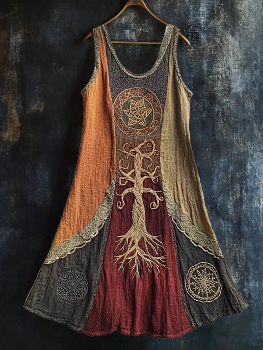 Damen nordische Mythologie Baum des Lebens Vintage Spitze Tank Kleid