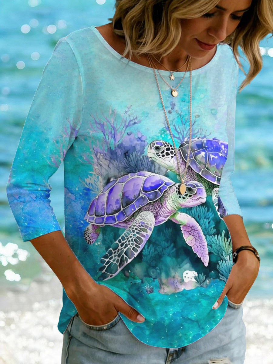 Damen-Ozean-Tiere Meeresschildkröten-Print Lässiges T-Shirt