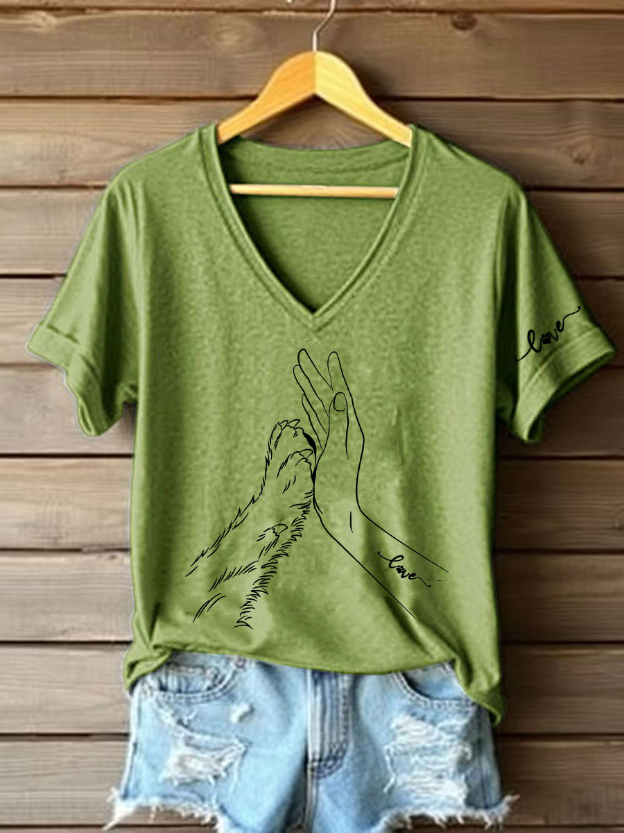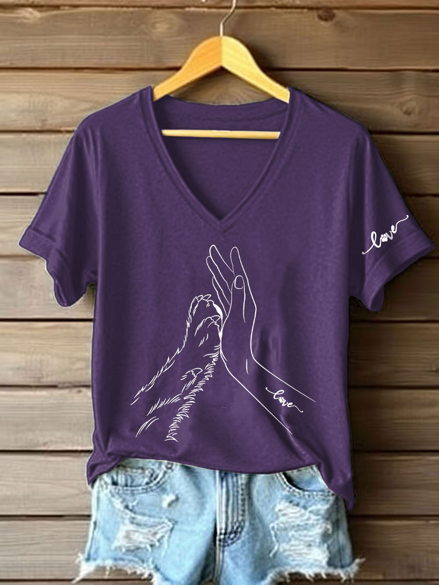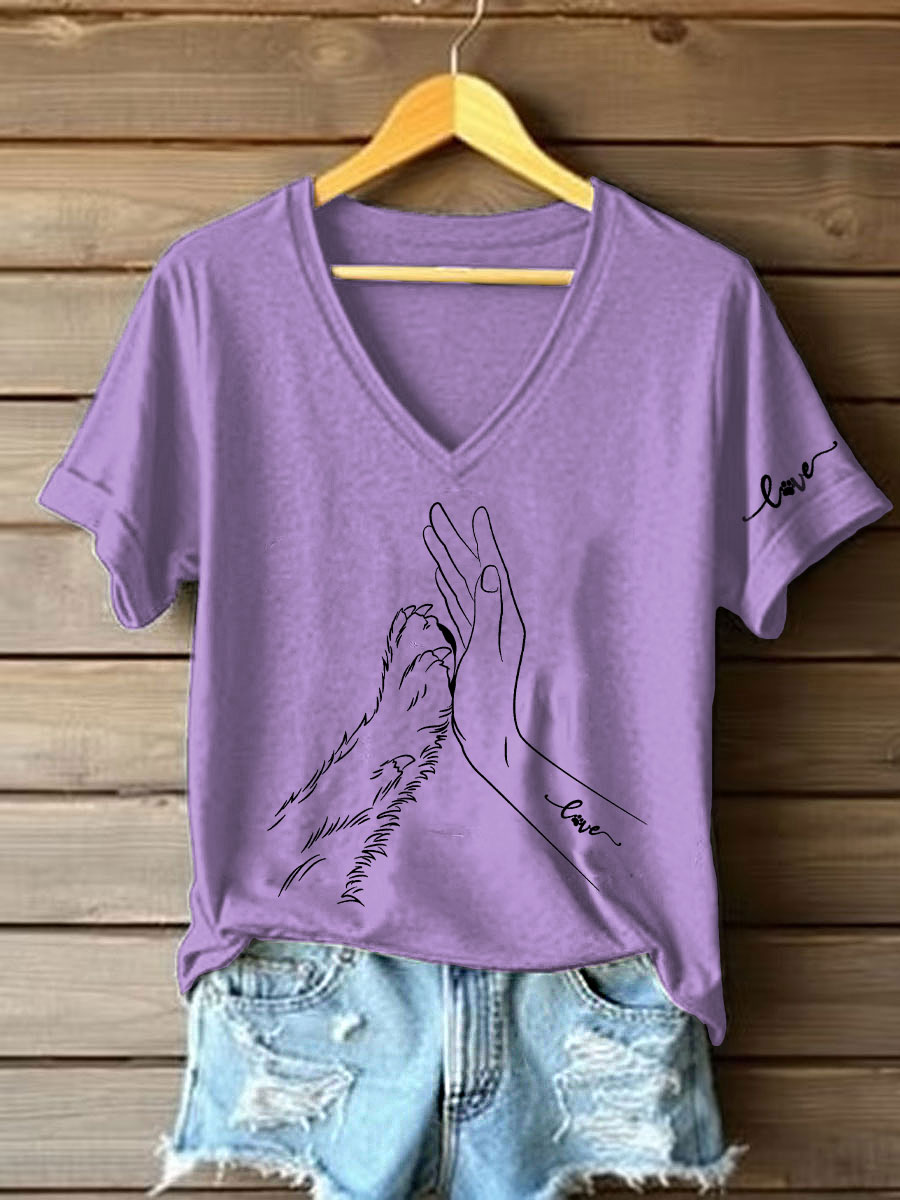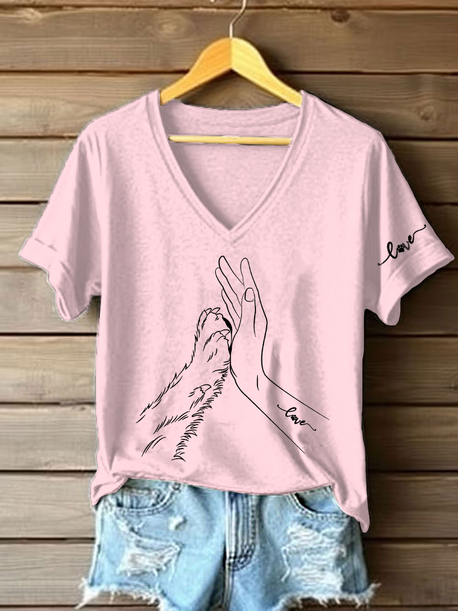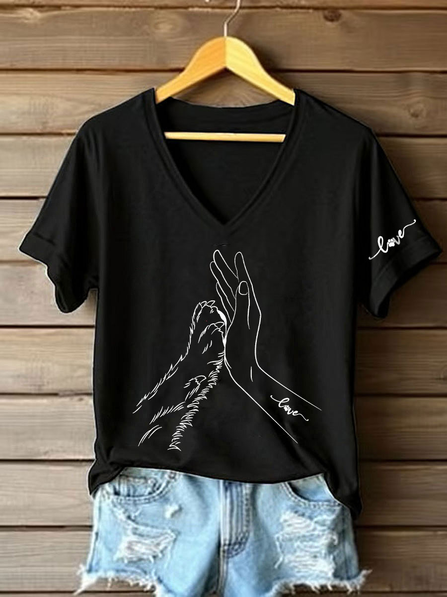 Damen-Pfote und hand bedrucktes lässiges T-Shirt