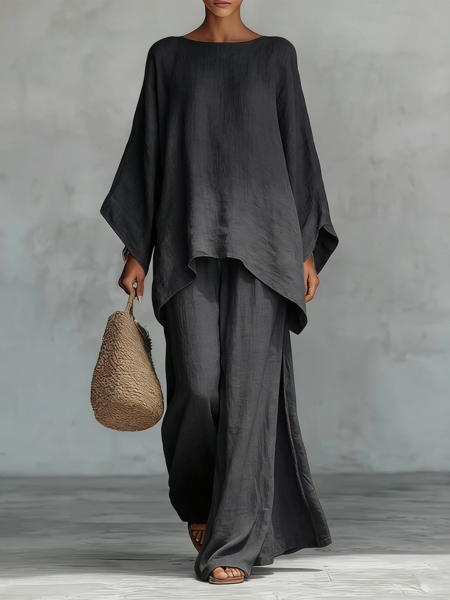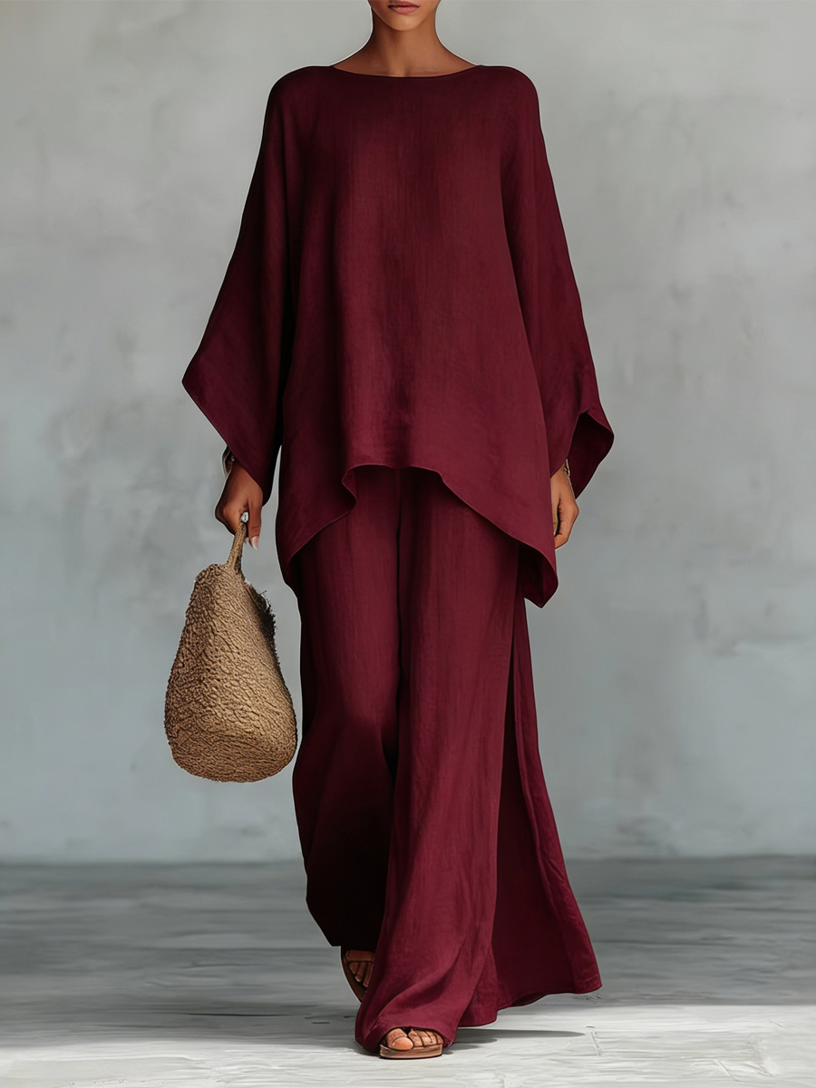 Damen reine Farbe elegante lässige weite Hosen Zwei-Teiler-Set