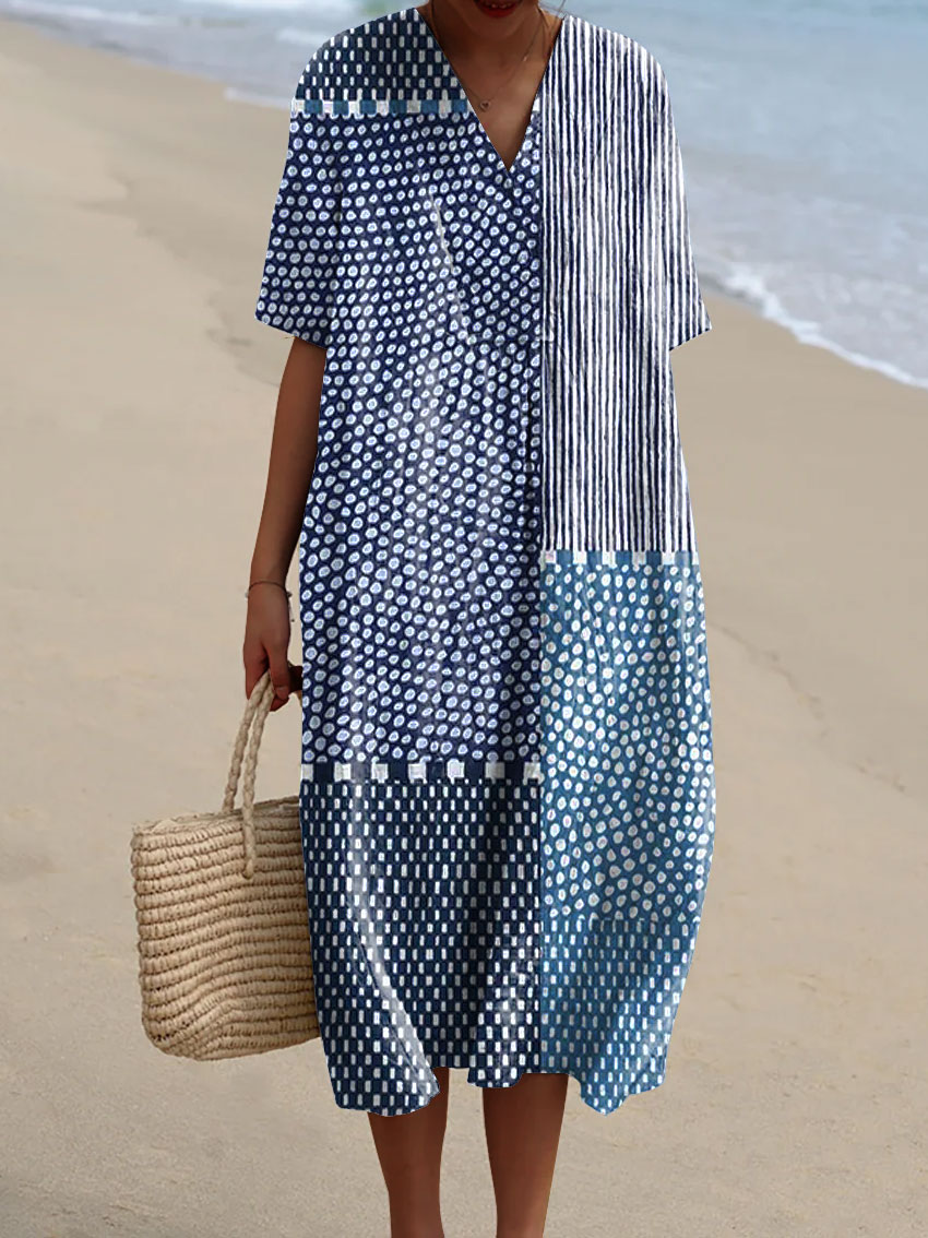 Damen Retro Polka Dot Streifen Kunstdruck Flowy Kleid
