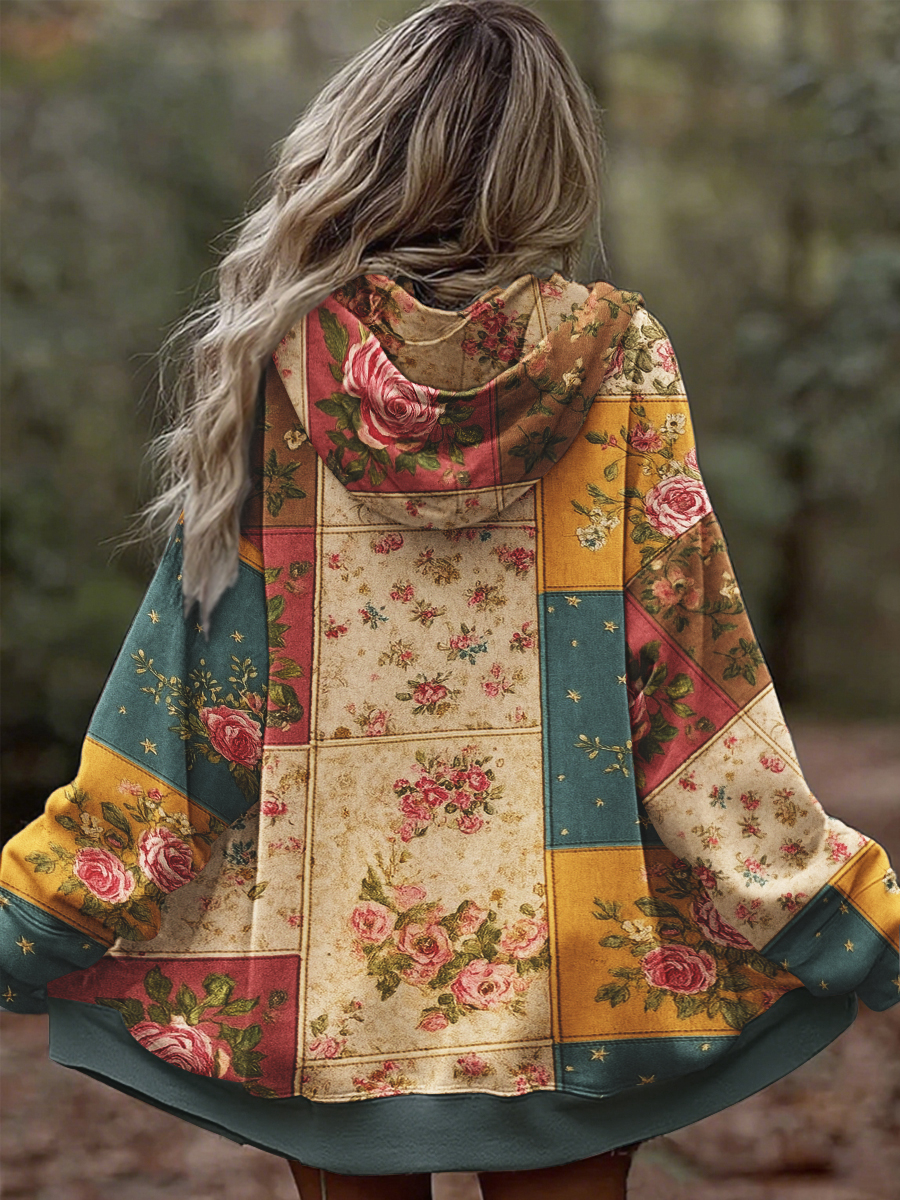 Damen Vintage Floral Patchwork Gemütlich Warm Reiß verschluss Hoodie
