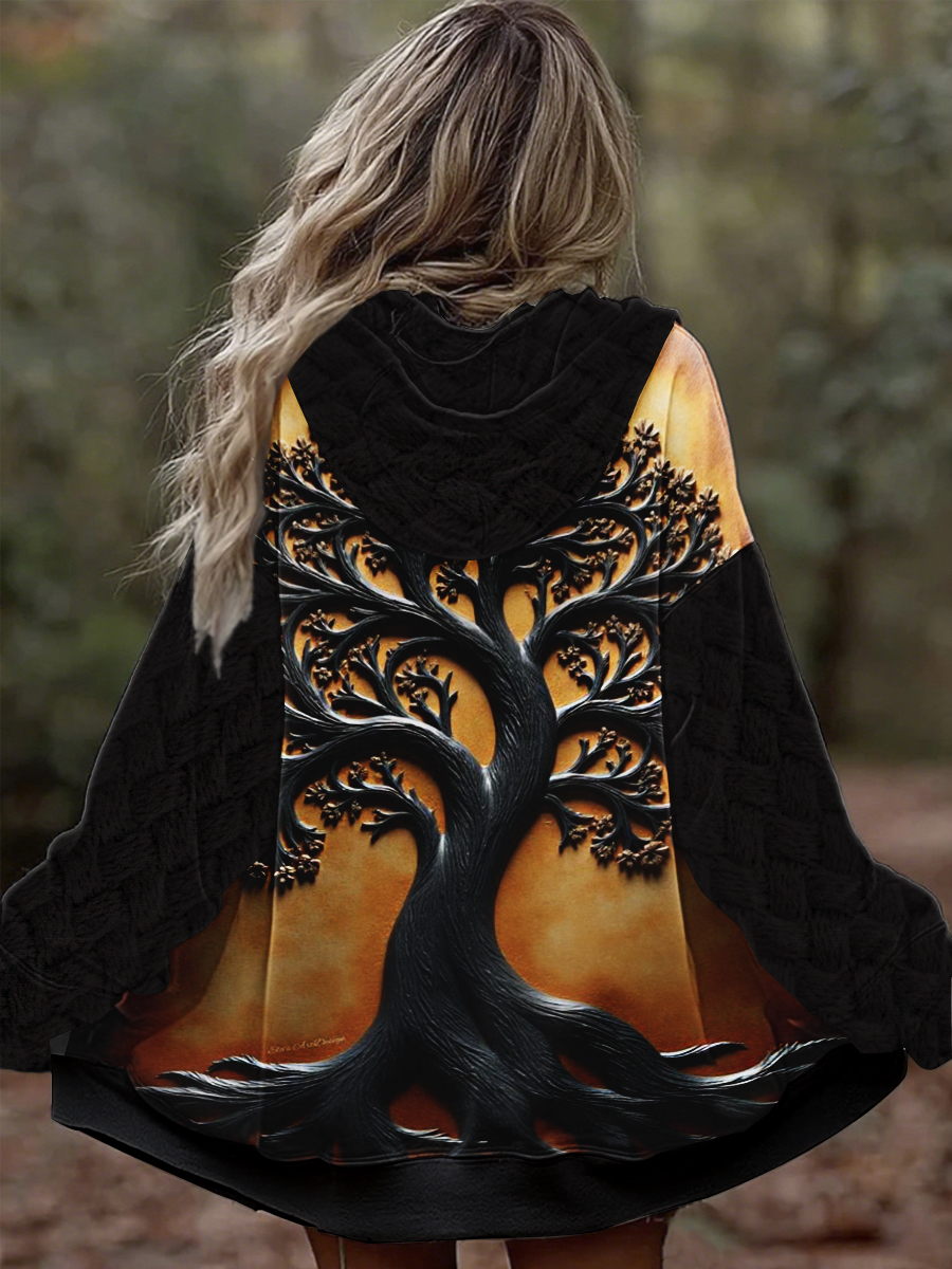 Damen Vintage Tree of Life Celtic Dick Nähte Komfortable Strick jacke mit Kapuze