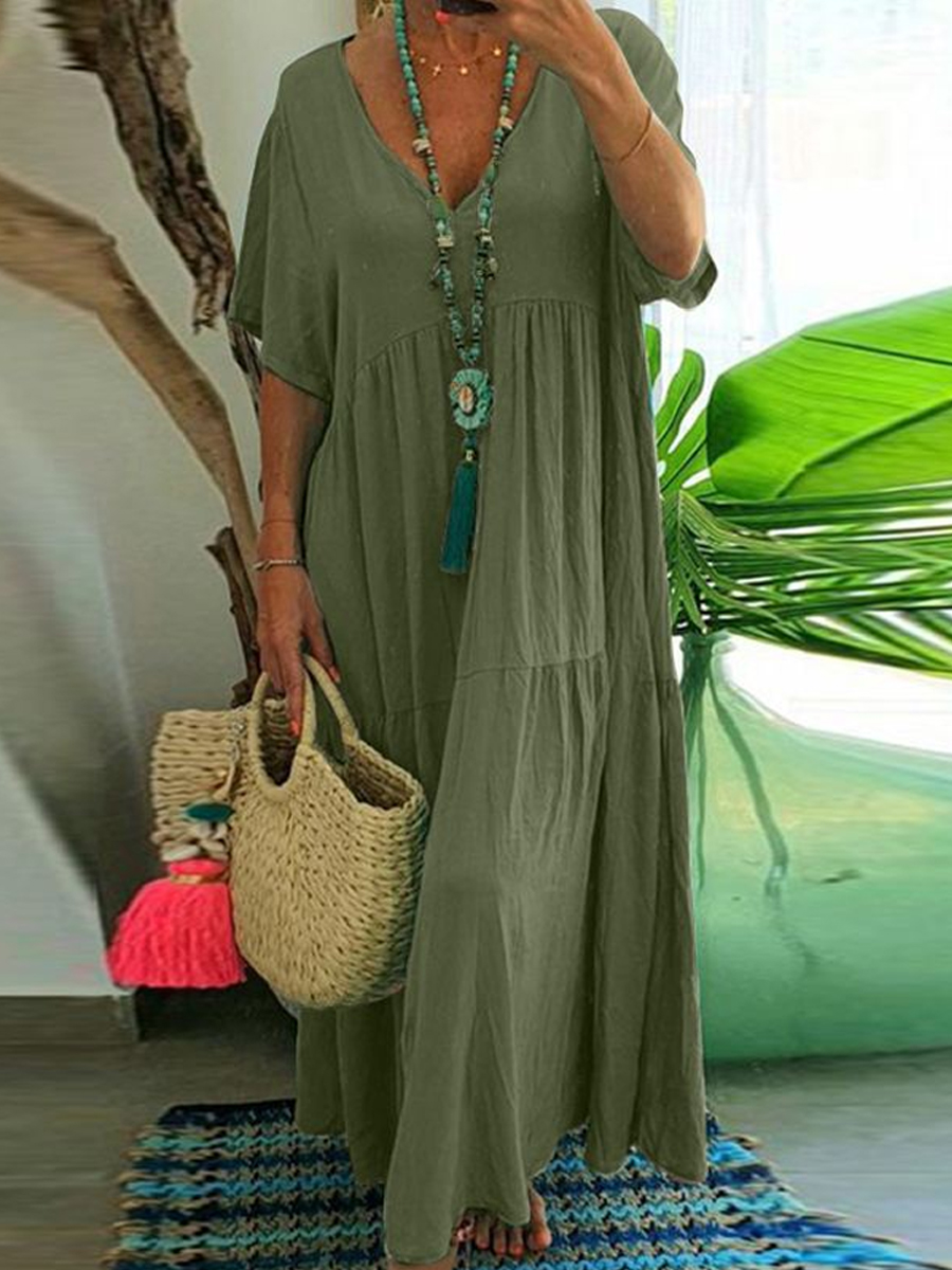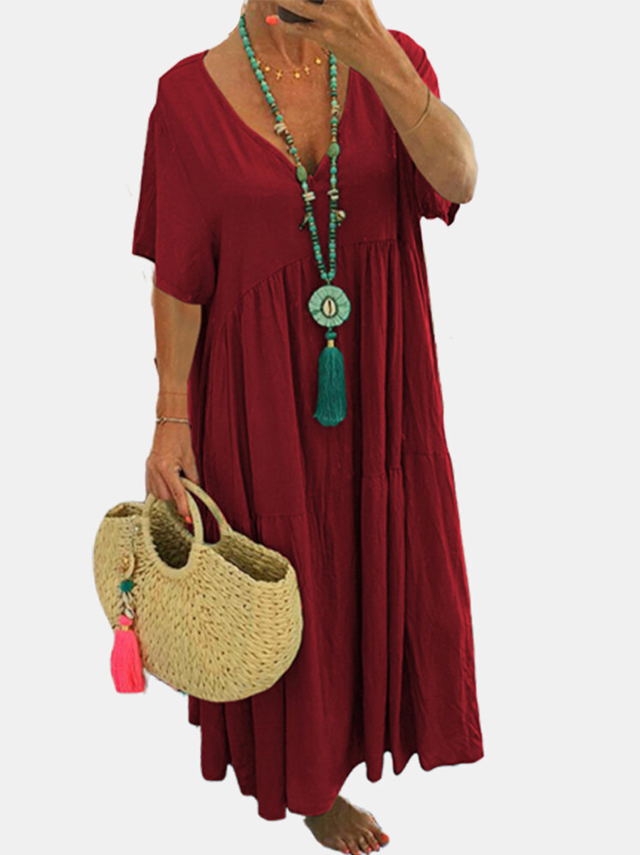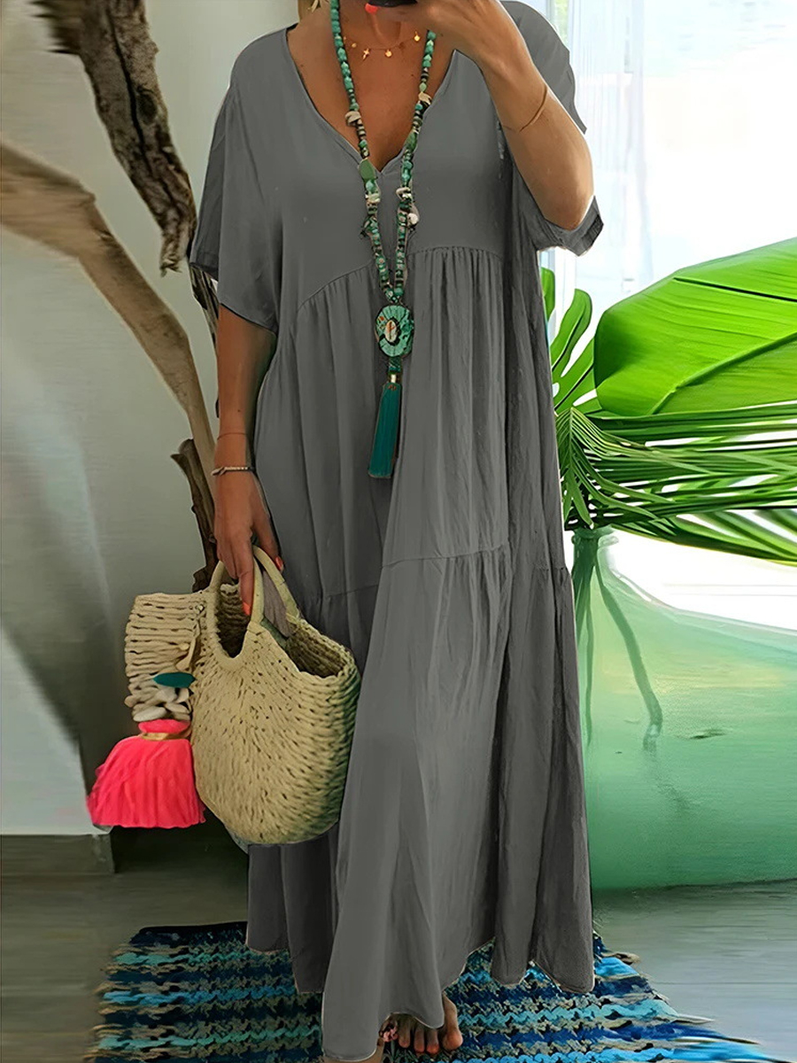 Damenfreizeitkleid mit lockerer Passform und V-Ausschnitt