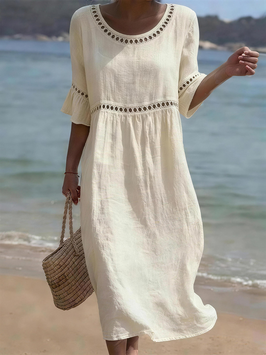 Einfaches einfarbiges Leinen-Misch kleid für Frauen