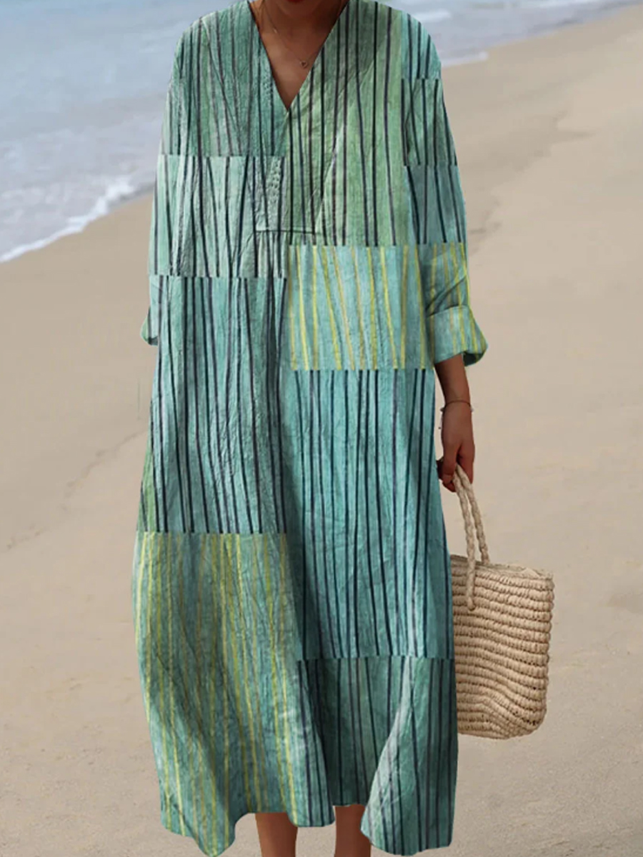 Frauen abstraktes geometrisches Linien muster Kunstdruck Baumwoll kleid