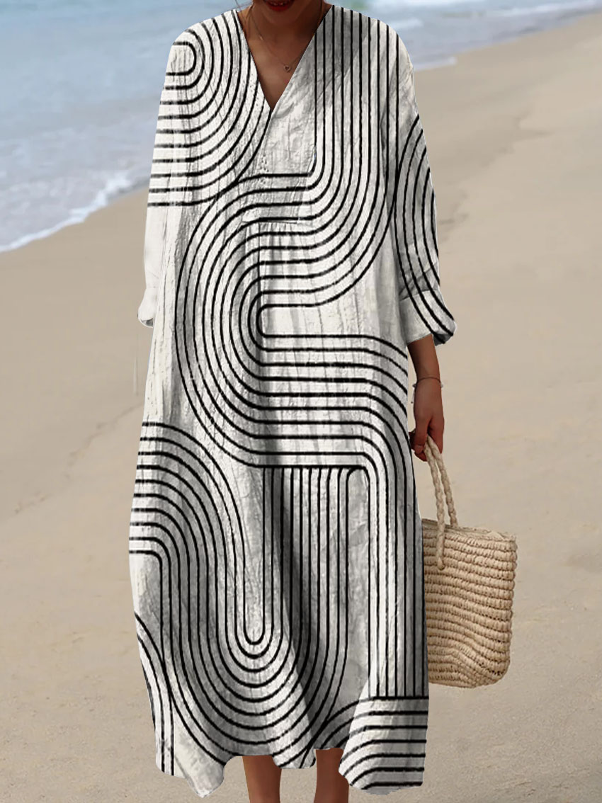 Frauen abstraktes Linien muster Kunstdruck Baumwoll kleid