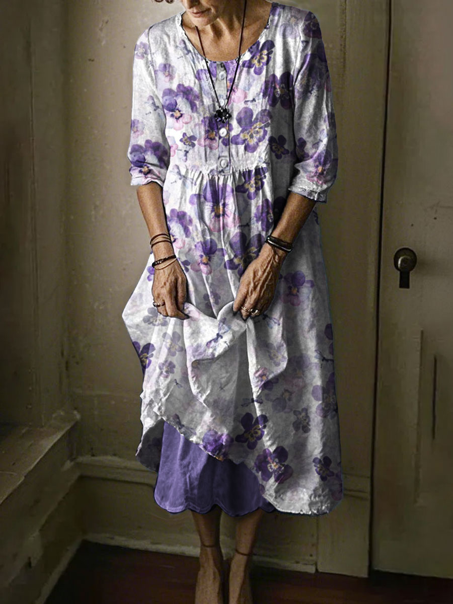 Frauen Alzheimer Bewusstsein Lila Floral Pansy Bedrucktes Kleid