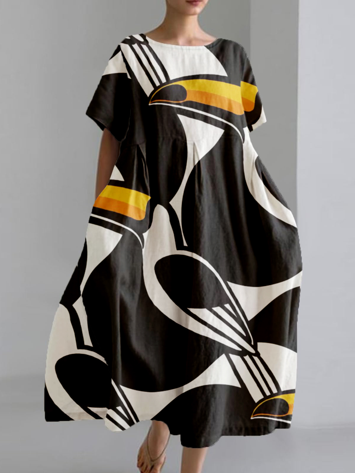 Frauen Copatucano Print Baumwoll Leinen Kurzarm Taschen kleid