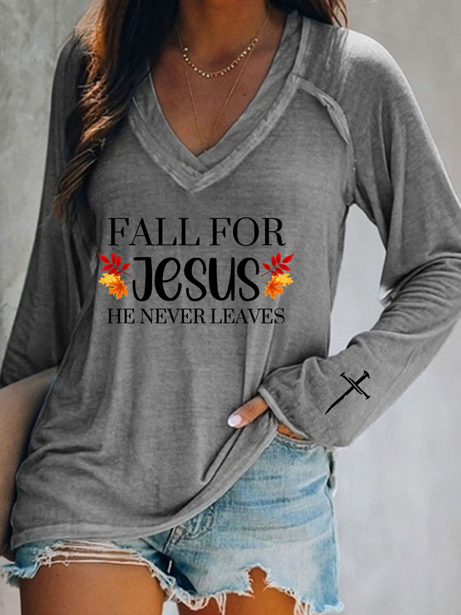 Frauen Fall für Jesus Er verlässt nie Print Casual T-Shirt