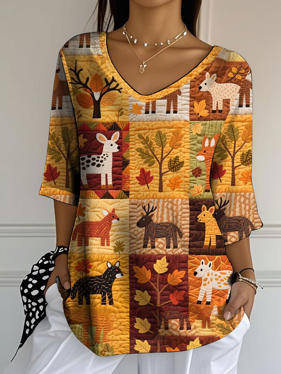 Frauen Herbst Tiere Halb-Ärmel T-Shirt