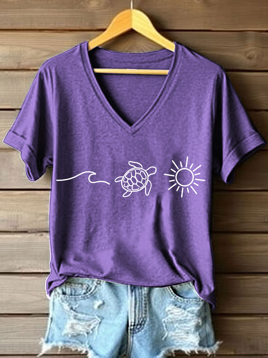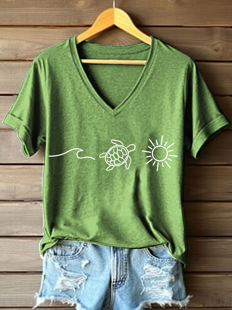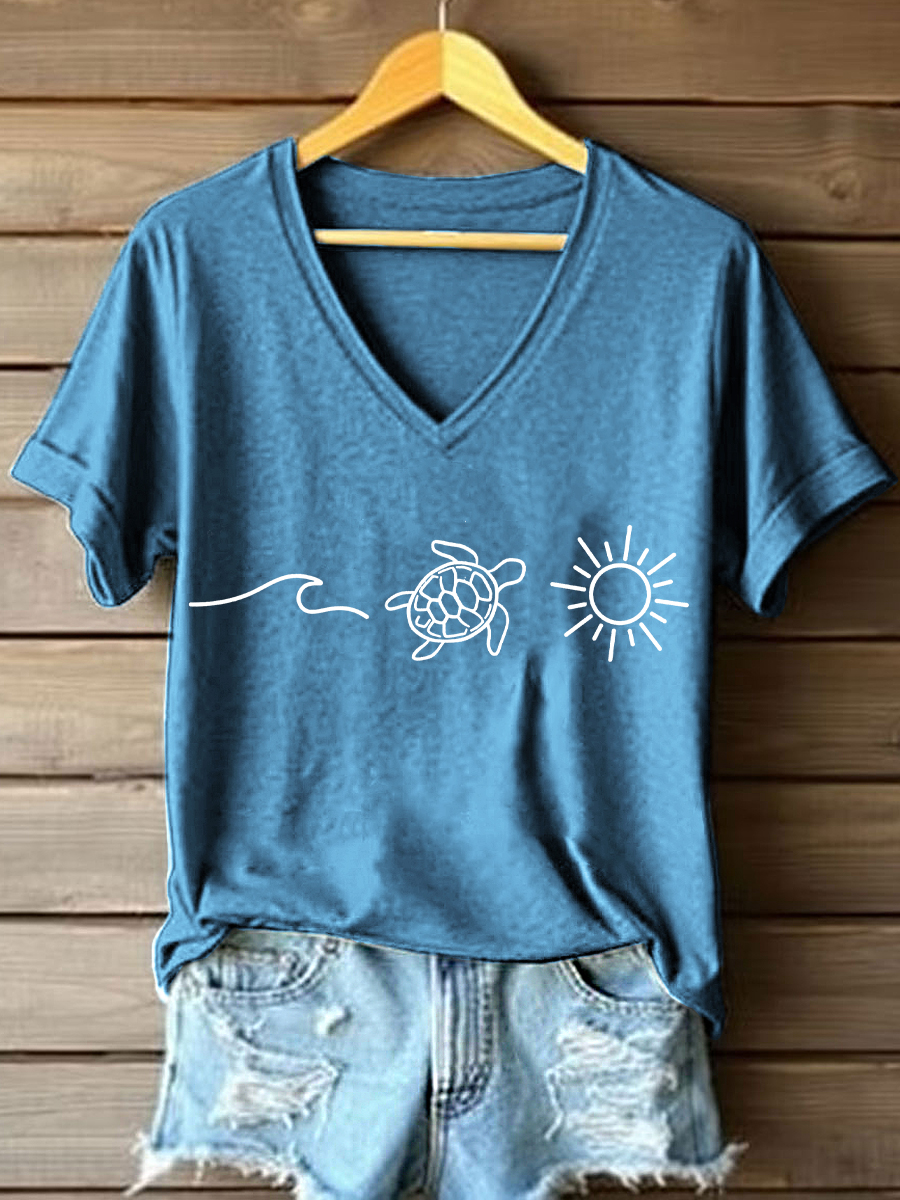 Frauen Ocean Turtle Sun Print V-Ausschnitt T-Shirt