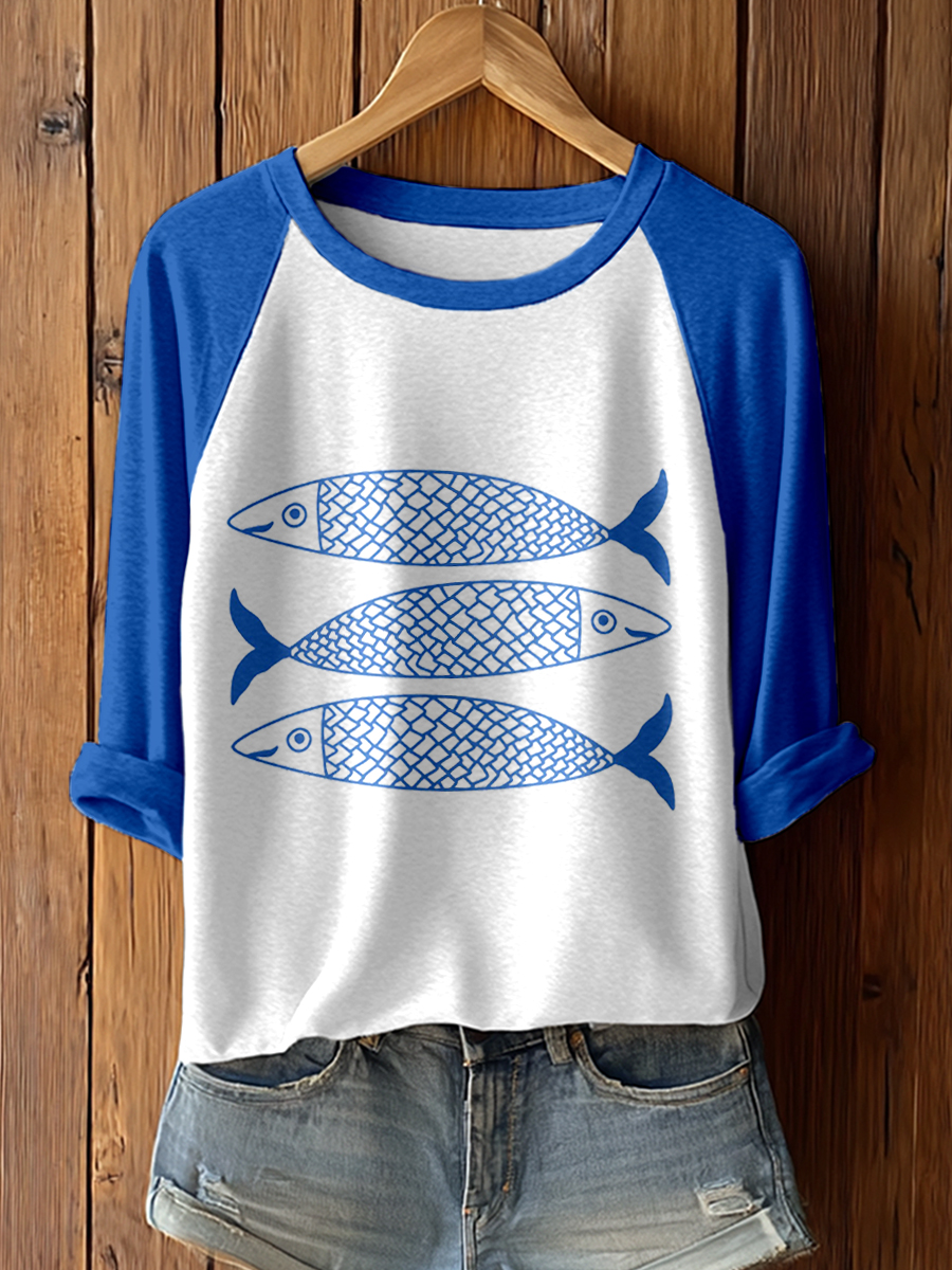 Frauen Vintage Sardinen Kunstdruck T-Shirt