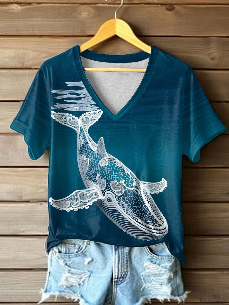 Frauen Wal Ozean Kunstdruck T-Shirt