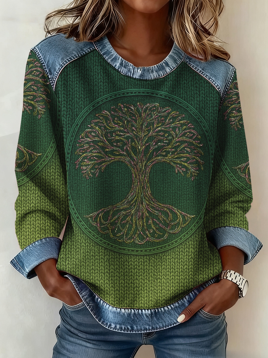 Frauen Wikinger Baum des Lebens 3D-Druck Denim Sweatshirt