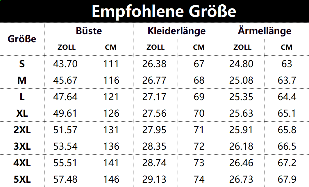 Größen tabelle: