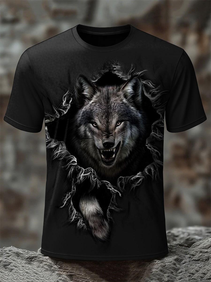 Freizeit-T-Shirts mit Wolfs druck für Männer