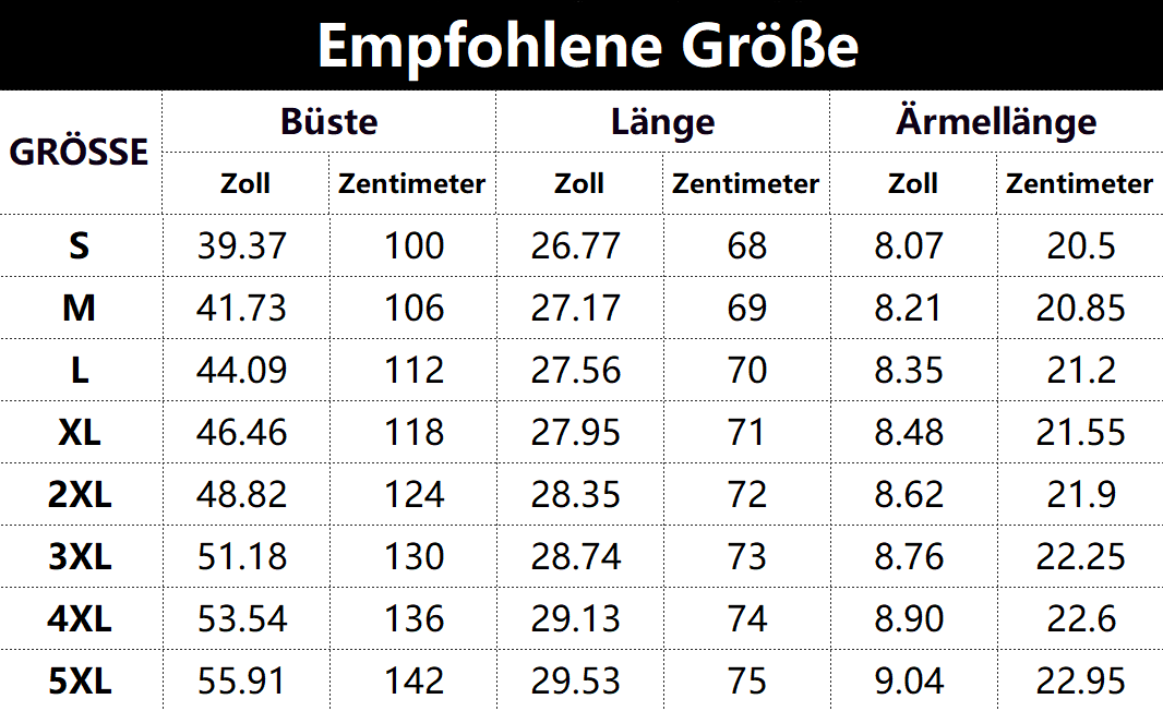 Größen tabelle: