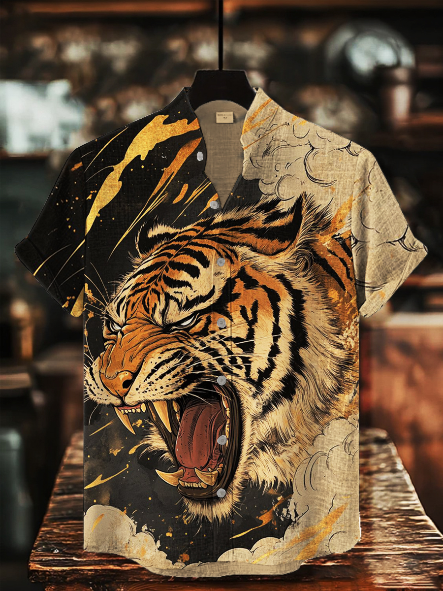 Herren Japanische Kunst Tiger Bedrucktes Hemd