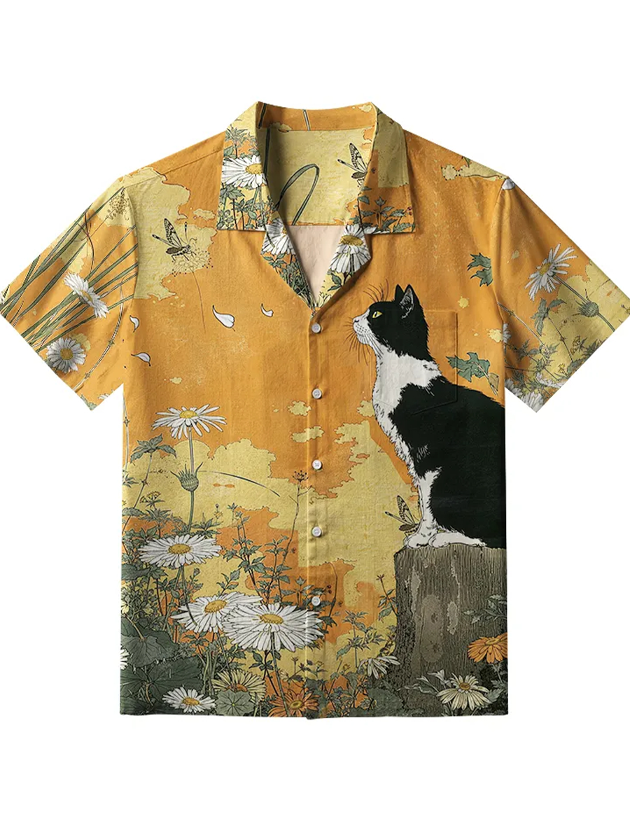 Herren katze umgeben von Gänseblümchen Knopf hemd