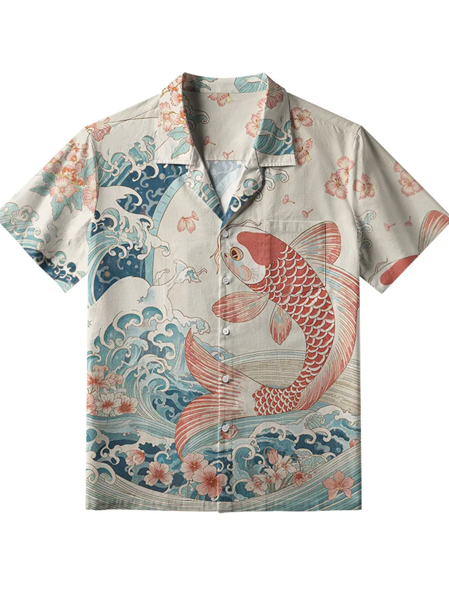 Herren Koi mit Sakura Wellen Knopf Hemd