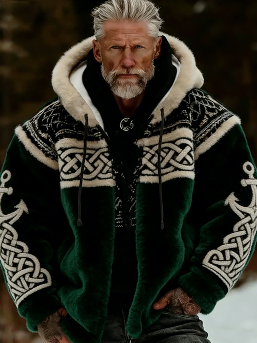 Herren Viking Celtic Art Plüsch Gemütliche warme Kapuzen jacke mit Reiß verschluss