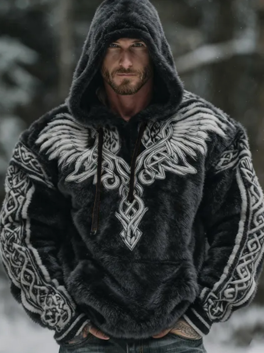 Herren Viking Celtic Wings Muster Gemütlicher Plüsch Flanell Hoodie