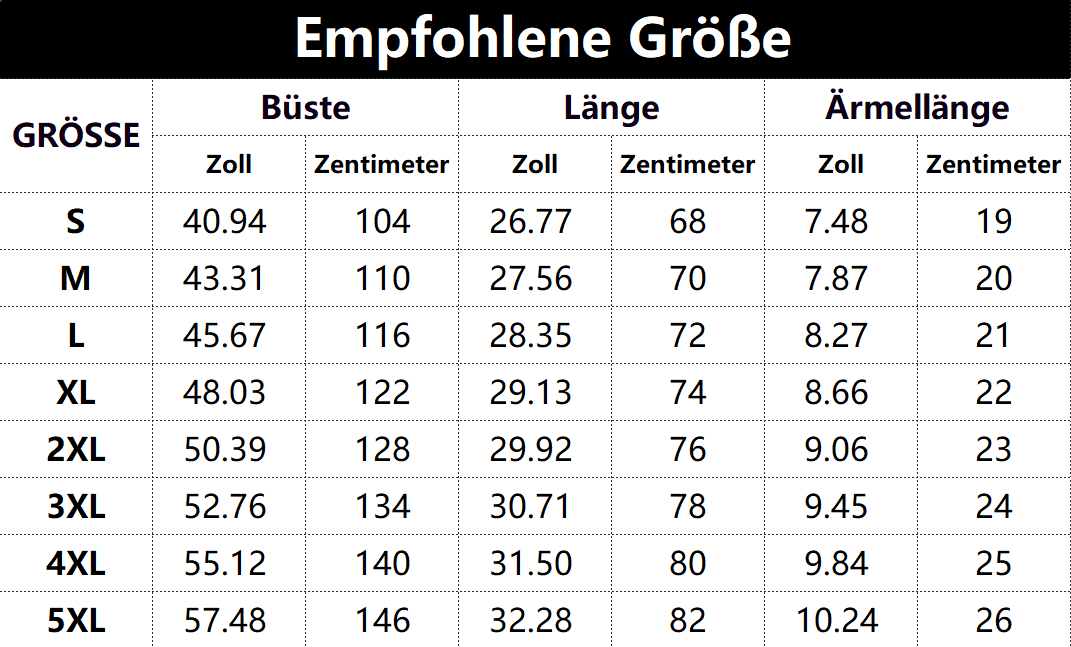 Größen tabelle: