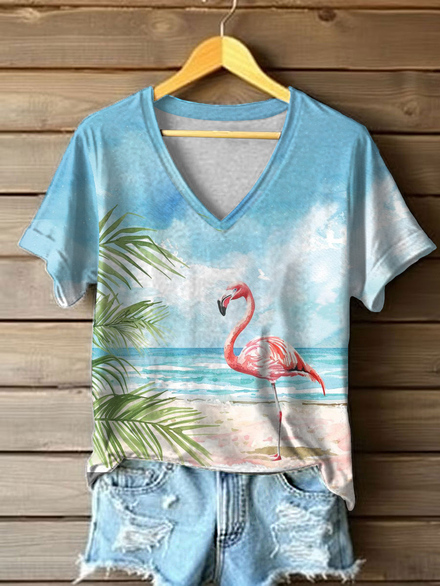 Kurzarm-T-Shirt mit Flamingo-Print für Damen