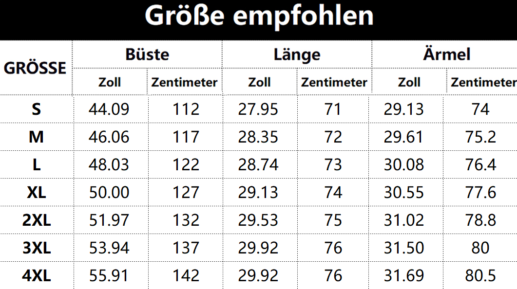 Größen tabelle: