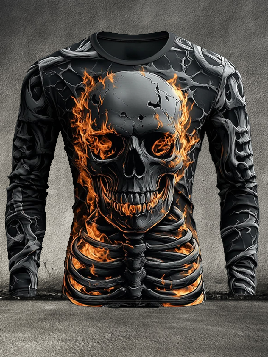 Männer Halloween Schädel 3D Druck Rundhals Langarm T-Shirt